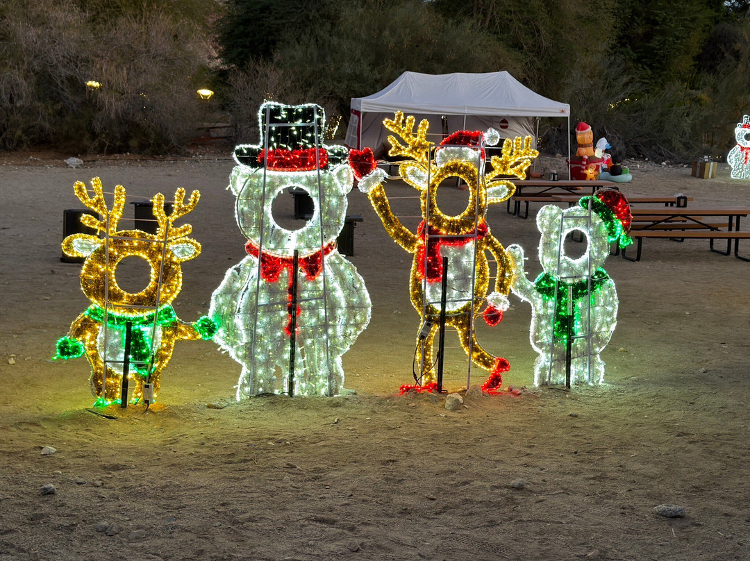 我们分别在圣诞节当天和圣诞节后一天去的,那天傍晚圣诞展览的灯光亮起。天气非常凉爽宜人,所有出来活动的动物都感觉非常舒适,这在夏天120华氏度(约49摄氏度)的高温下是很难看到的。