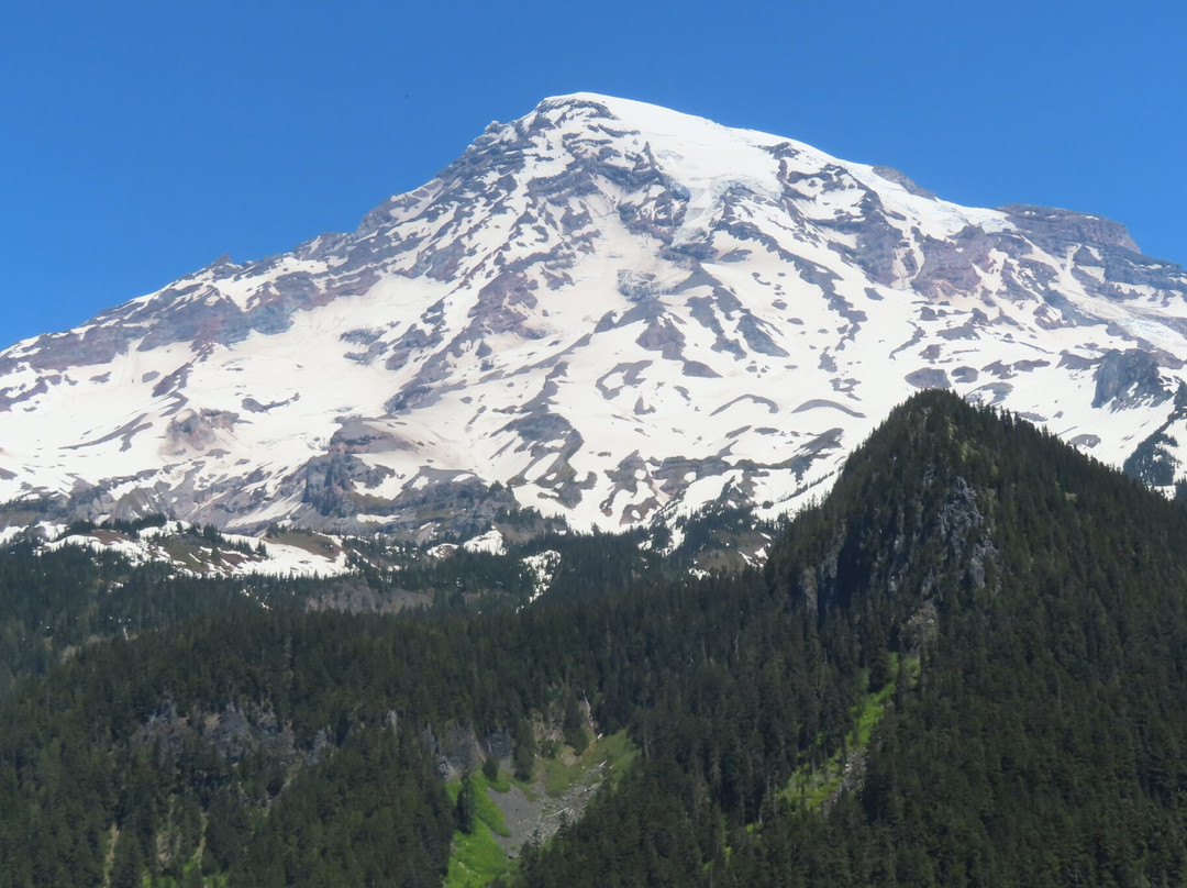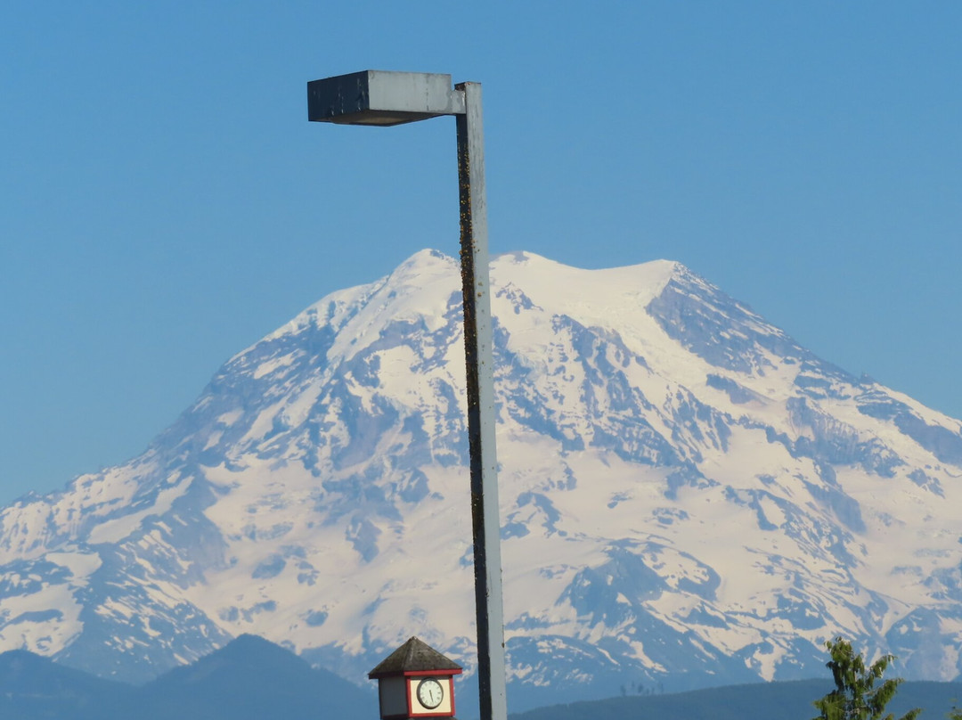 点评:Mount Rainier is an active Volcano and has the most glaciated peak in the contiguous USA. It spawns 5 major rivers. Ascending to 14, 410 feet above sea level, the snow-capped mountain is an icon in the Washington landscape. On a clear day, you can see it on the horizon from almost anywhere – We had four glorious sunny days in Seattle and saw it from the airplane as we were landing, from the Observation deck in the Space Needle, and from several places during our various tours. How amazing…!