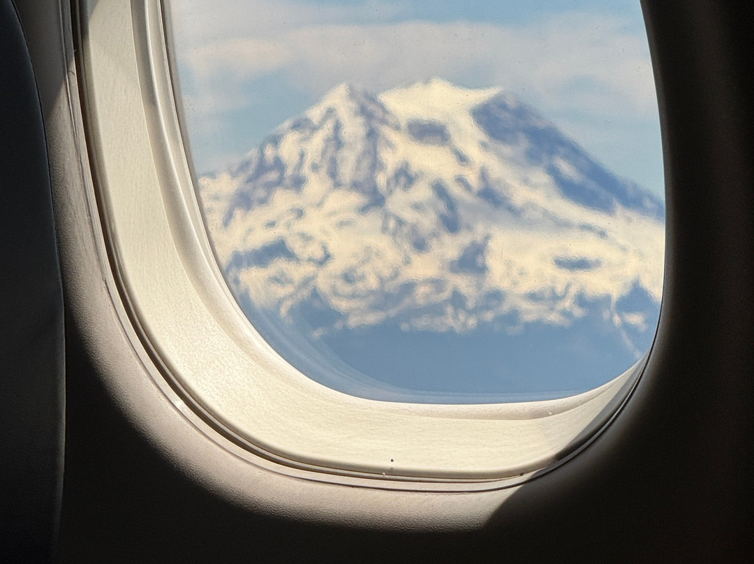 翻译:雷尼尔山是一座活火山,也是美国本土冰川覆盖最广的山峰。它孕育了五条主要河流。这座白雪皑皑的山峰海拔高达14,410英尺,是华盛顿州的标志性景观。在晴朗的日子里,几乎从任何地方都能看到它出现在地平线上——我们在西雅图度过了四个阳光明媚的日子,在飞机降落时、太空针塔的观景台以及我们多次旅行中的多个地方都看到了它。真是太神奇了……!