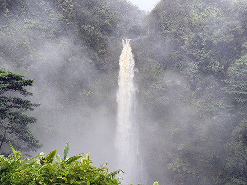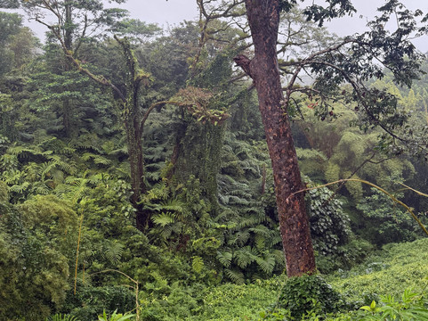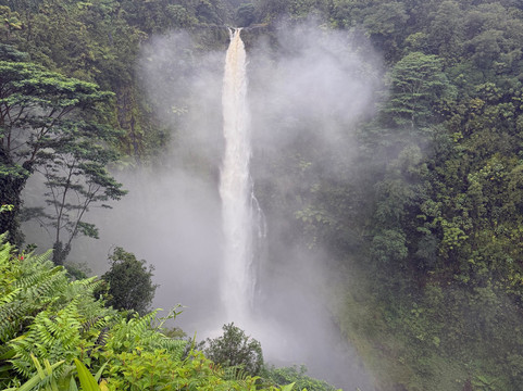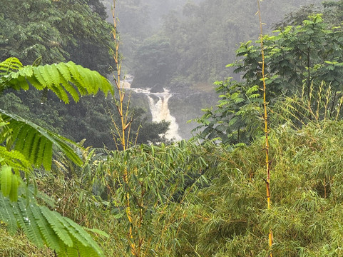我们酒店所在的背风面,清晨的景色美不胜收。而我们前往迎风面时,却阴云密布,还飘着零星小雨。虽然雨水让瀑布的气势更加磅礴,但雾气也掩盖了它整体的壮丽。不过,充足的水量确实让步道沿线和瀑布周围的植被变得高大、美丽、郁郁葱葱。事实上,我离开时可能更被这些茂盛的植被所吸引,而不是瀑布本身。