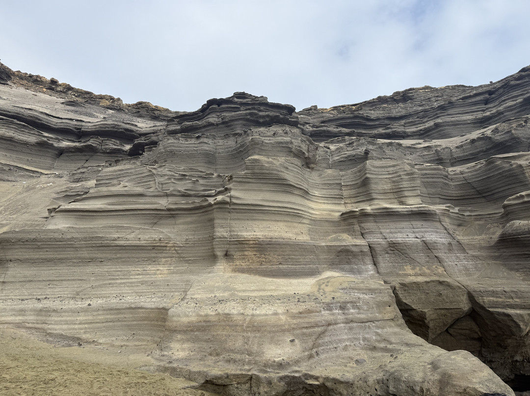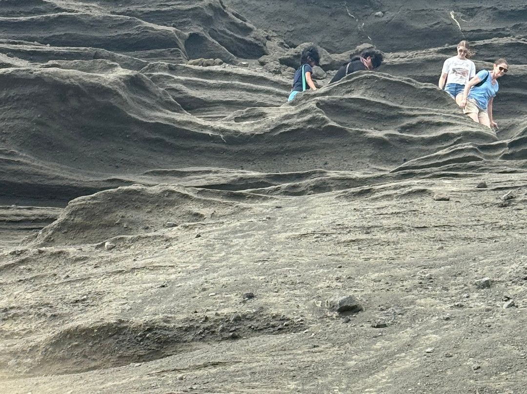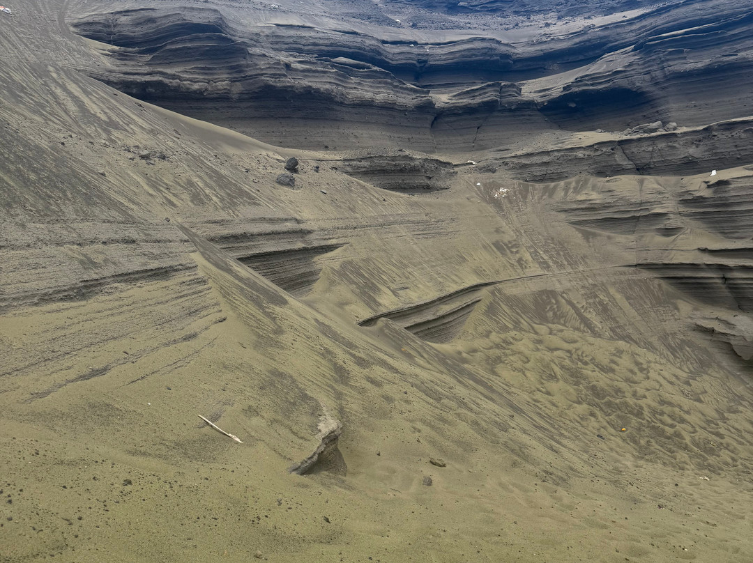 翻译:如果你在夏威夷大岛时间充裕,绿沙滩绝对不容错过。从科纳开车大约90分钟即可到达绿沙滩。到达后,你虽然身处海边,但还不能直接走到沙滩上。要到达绿沙滩,你可以选择徒步2.5英里(单程),或者搭乘卡车,往返费用约为每人25美元。卡车只会等你大约一个小时,让你有时间好好享受海滩。如果天气像夏天那样炎热潮湿,搭乘卡车也是个不错的选择;但如果天气像我们2025年12月去的时候那样阴冷,徒步则更为舒适。步行时阳光直射,所以一定要注意穿着合适的衣物并涂抹防晒霜。这里的风力非常强劲,附近的大部分树木都被风吹得向北倾斜。如果你选择徒步,就做好弄得满身尘土的准备吧。徒步本身并不难,但路面崎岖不平,布满岩石。游览这片海滩需要充足的时间——包括从科纳出发的车程在内,大约需要5-6个小时。到达海滩需要攀爬一些摇摇晃晃的台阶和一些沙质岩石,这对行动不便的人来说可能比较吃力。