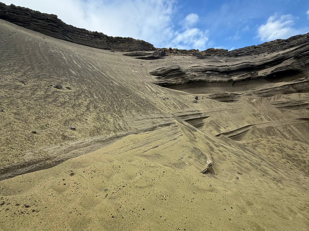 海滩的颜色更像是橄榄绿。这种绿色源于某些熔岩流玄武岩中发现的橄榄石矿物。这里的熔岩来自普乌奥马哈纳火山。海滩面积不大,但景色非常优美。海滩上的海浪很大,风吹起的沙子也随处可见,更增添了海滩的独特魅力。但这一切的付出都是值得的,因为它是世界上四个著名的绿色海滩之一(其他三个分别是关岛的塔洛福福海滩、加拉帕戈斯群岛的蓬塔科莫兰特海滩和挪威的霍宁达尔斯瓦特内特海滩)。