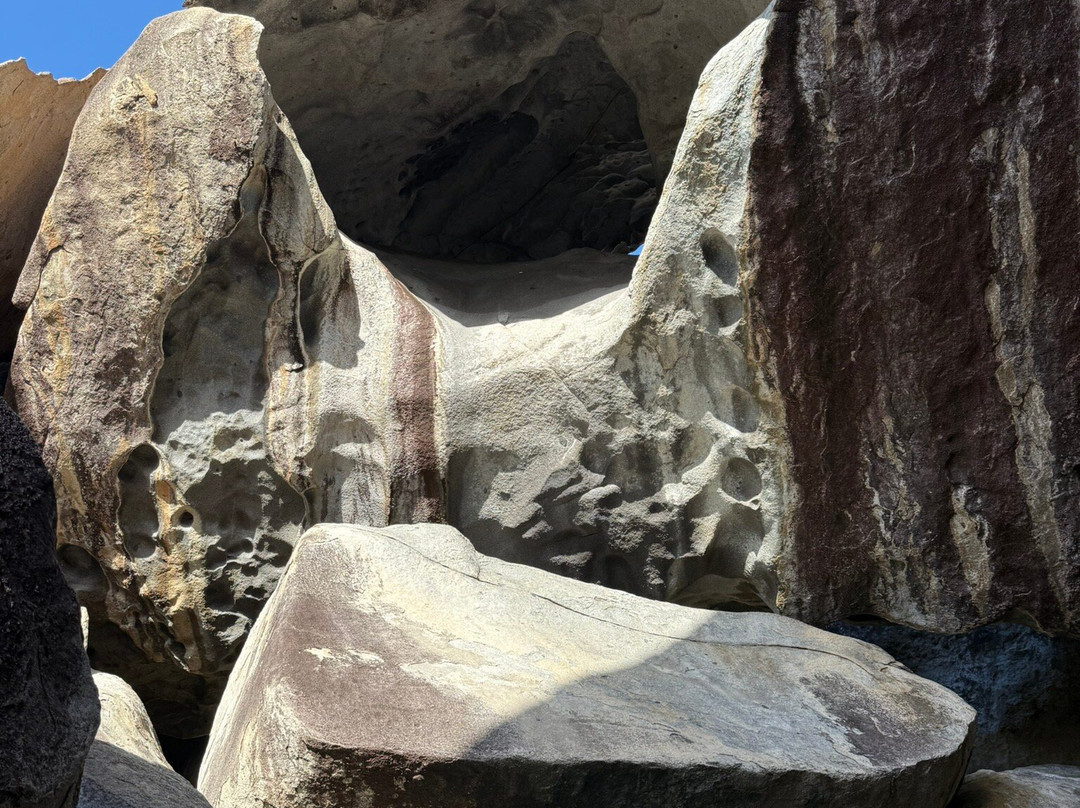 在这里游泳是一种奇妙的体验。平静清澈的海水在巨石间流淌,形成天然水池,是漂浮、浮潜或只是静静欣赏周围美景的理想场所。阳光透过岩石缝隙洒下,将海水染成闪烁的蓝银色光芒。