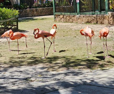 他们每天有三场火烈鸟表演,他们的训练有素的火烈鸟队会表演小型的行进队形。我强烈建议您参加,因为这是我们旅行的真正亮点!当它们不表演时,它们可以自由地在动物园里闲逛,所以即使您不能参加表演,也可能会碰到它们。