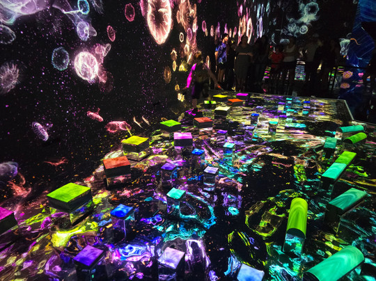 倒影、声音、灯光等等,一切都让这次体验如此美妙。在水里,如果鱼游到你身边,它们会变成花朵。有些房间是黑暗的,还有360度的体验,让我感觉自己像在坠落,让我和妻子都迷失了方向(孩子们很喜欢)。舞厅可能是所有房间中最令人失望的。