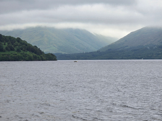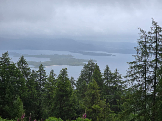 我们到达一处平坦的地方,帕迪接手带我们爬上山顶,俯瞰着罗蒙湖和湖中岛屿的景色。每隔几分钟,云朵就会变换不同的景色。