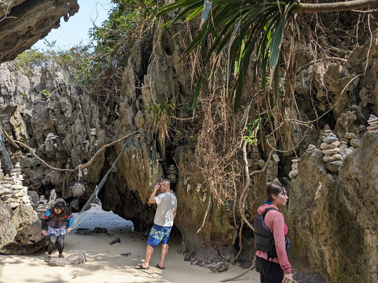 这正是我们得到的。第一晚是在一艘有两间舱的船上度过的。这真是太迷人了。我们划着皮划艇穿过令人惊叹的洞穴,直到手臂酸痛,在船上吃了美味的食物,然后晚上停泊在世界上最安静的地方,我们钓了几个小时的鱿鱼。绝对精彩。