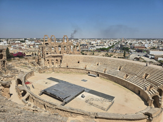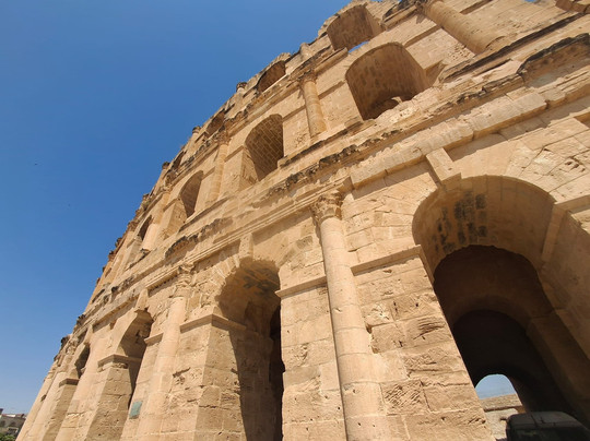 翻译:我很高兴我们选择了埃尔杰姆露天剧场。就在我们参观这个露天剧场的两周前,我刚去过罗马斗兽场,相比之下,这次参观更加特别。每人只需12第纳尔(3英镑)就能入场,而且门票还包含附近博物馆的门票。我们租了一天车,司机先把我们送到了露天剧场,之后又来接我们去博物馆。