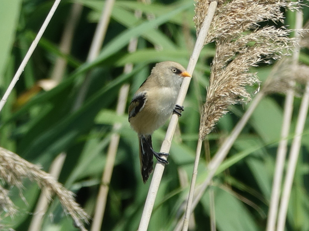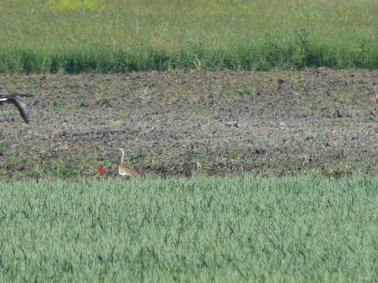 在第一个观景塔处,远处已经有两只大鸨,用Tamás带来的望远镜可以清晰地看到它们。接下来的亮点是:蓝颈鹃、长尾山雀、蛇雕、大苇莺、斑鸠、杜鹃、白鹭,以及远处蜂鸟、白尾海雕和领鹬的美丽特写,以及地松鼠的鸣叫声。我们看到了更多物种,但不想列得太长。总而言之,我们绝对推荐和Tamás一起旅行。