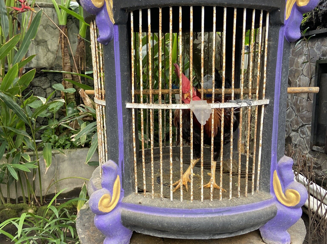 Why are there cockerels in tiny cages scattered around bizarre!