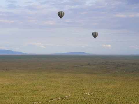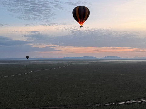 升空的那一刻简直太神奇了:壮丽的日出洒满大草原,空中一片静谧。飞行过程中,我们从鸟瞰的角度看到了许多动物——这是普通野生动物之旅无法提供的独特体验。