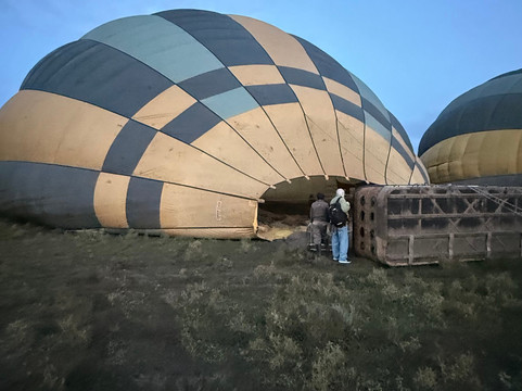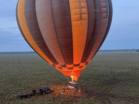 Dank unseres Guides konnten wir den Flug in der Ndutu-Region erleben – eine perfekte Wahl. Das frühe Aufstehen war es absolut wert. Schon die Fahrt am Morgen fühlte sich wie eine kleine Nacht-Safari an. Am Startplatz angekommen, konnten wir beobachten, wie es langsam hell wurde – eine ganz besondere Stimmung.