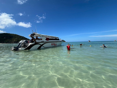 我们前往帕岸岛,并在玛岛附近停留浮潜。船员们显然对这片海域非常熟悉,直接带我们去了一个绝佳的浮潜点,那里有很多海洋生物。他们非常热情,乐于讲解各种知识,并指出应该在哪里观赏。