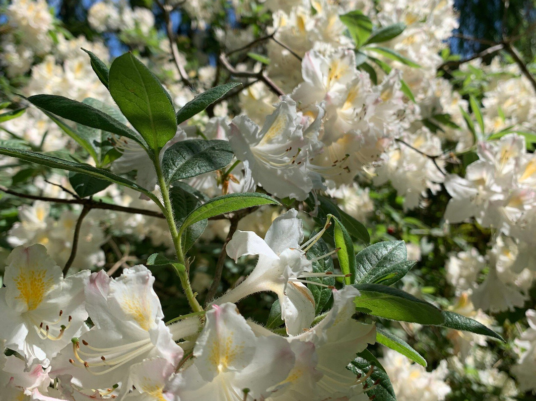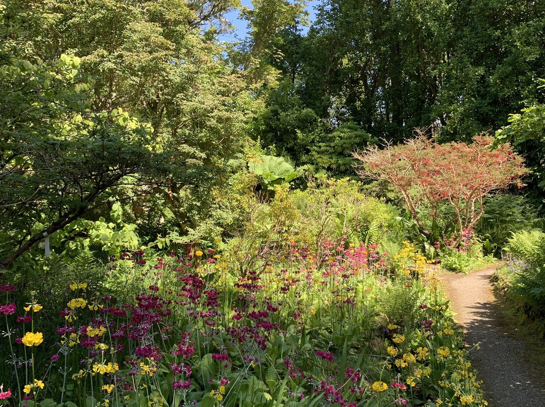 点评:We spent a wonderful 3 hours visiting this amazing garden on a warm sunny day in May. The backdrop of Loch Melfort and its islands is staggeringly beautiful and there is a great vantage point over the bay in the upper part of the garden. Like the National Trust for Scotland’s Inverewe Gardens, Arduaine benefits from the Gulf Stream so tender plants flourish here, including a small plantation of tree ferns and New Zealand’s daisy bush. The upper part of the garden is in transition, having sadly had to remove its canopy of Japanese larch due to Phytophthera, but there is still much to see as the gardeners were able to protect the shrubby understory, which is also re-colonising with foxgloves and other seedlings. We weren’t sure about the large number of fallen logs being left, but presumably they will form part of the new designs for this area. Some wonderful rhododendrons, azaleas and other shrubs flourishing in a terrane which felt like a Mediterranean hillside, such was the warmth and intensity of the sun! Much of the lower garden, perhaps our preference, was a charming and cooling water garden of cascading streams and pools. There are some fine herbaceous borders and mixed shrubberies though which will provide welcome summer colour. For cafe and shop, including a small plant centre, and, yes, highland cows, visit the next door Loch Melfort Hotel with its gorgeous sundeck looking out onto the loch. Very relaxing and best carrot cake I’ve had for a long time!