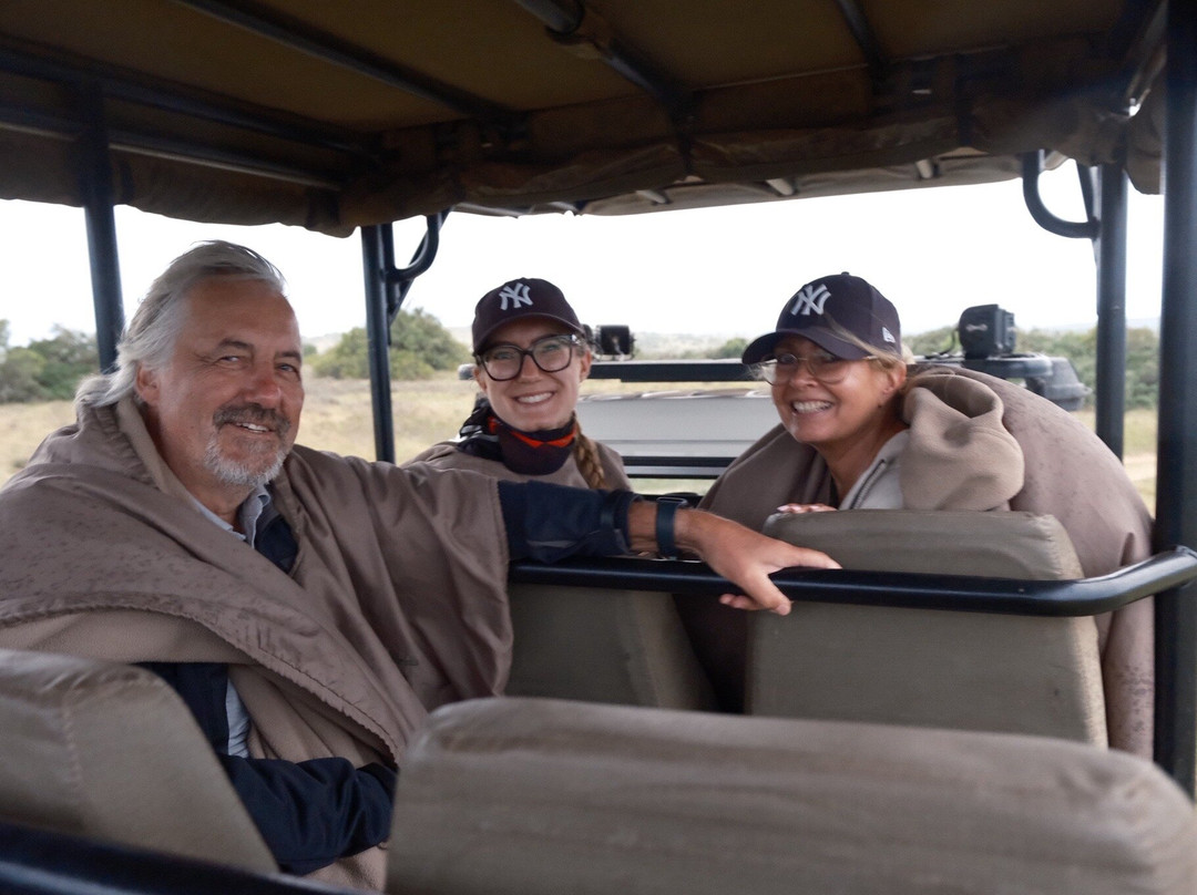 翻译:我们永远不会忘记这次精彩绝伦的体验!一切都始于我们出色的向导查尔·杜托伊特,他用他丰富的动物知识和精彩的故事让我们兴奋不已。他为我们打开了一个全新的世界,帮助我们理解了野生动物的复杂性和美丽。多亏了他的带领,我们才能如此近距离地体验野生动物。我们置身于一群巨大的大象和它们的小象之间,看到了彭彭和它们的宝宝,犀牛、河马、角马,以及各种各样的羚羊——其中就包括著名的伊兰羚羊。当然,我们还看到了狮子——三只母狮、一头小狮,最后在夜幕降临返回的路上,我们还看到了威风凛凛的开普敦之王。整个行程安排得非常完美。我们准备了温暖的雨披和毯子,还有咖啡休息时间,以及在拉帕凉亭享用的丰盛晚餐,篝火、音乐,还有向导查尔讲述的更多精彩故事。谢谢你,查尔,谢谢你,肖蒂亚♥️