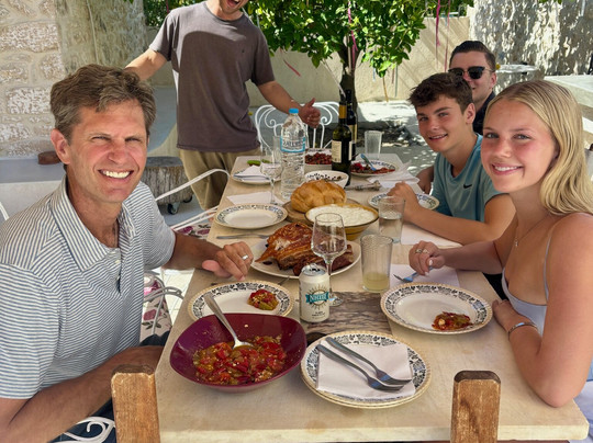 翻译:我们非常感谢Epos Travel & Tour为我们这个充满活力的五口之家量身定制的行程!行程包含雅典卫城和科林斯的私人游览、伯罗奔尼撒半岛的导览徒步、卢西奥斯河漂流(宙斯沐浴的地方)、卢西奥斯峡谷徒步和悬崖修道院参观、萨罗尼克湾一日游(喂野生孔雀和鹿、在洞穴中游泳、享用新鲜捕捞的鱼类和船上各种小吃的美味午餐、立式桨板冲浪和钓鱼)、埃伊纳岛电动自行车之旅、烹饪课程以及在狄俄尼索斯母亲家中享用的美味佳肴——真是人性化又热情好客!!!这次旅行让每个人都玩得尽兴,我们唯一的遗憾是希望能有更多时间!如果您正在考虑去希腊旅游,Epos Travel & Tours将帮助您为您的团队打造完美的旅行,让您体验地道的希腊风情——我们强烈推荐这家公司!!!