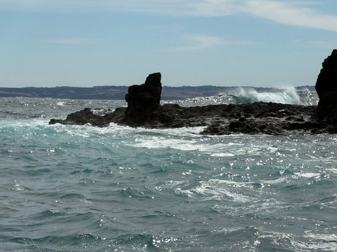 我们坐在楼上,眺望船尾,度过了一段美好的时光。前往海豹岩的路上风景优美。