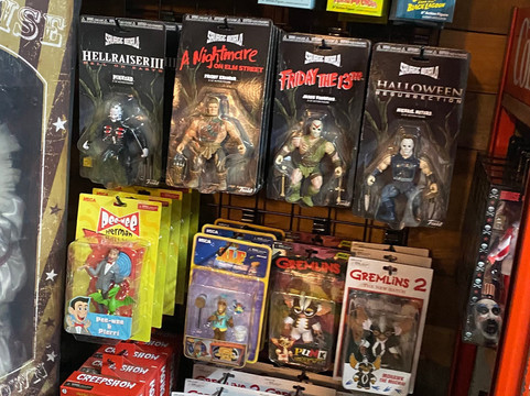 We bought a few horror goodies; Halloween II Michael Myers (for my 7yo) and I picked up a Jason Voorhees Christmas ornament and Judith Myers tombstone Christmas ornament.