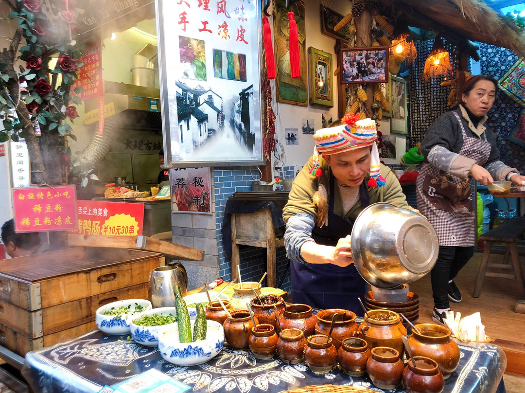 来到九转花街有一种清明上河图的既视感,也是古镇中最为繁华的地方,也是游人最常去的步行街,这里你能吃到各种传统美食(划重点),也能买到不少的民间工艺品看手工艺人现场打造,也能花点钱去租民族服饰在这里拍照,若不是住在朋友家,肯定会义无反顾来到这里住客栈,有些体验是我们难以想到的。