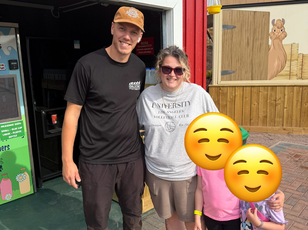 点评:We visited Dalscone on 25th August, me, my husband and our 2 girls. What an exciting but emotional visit it was. After years of following their journey all through lockdown up until now I’ve wanted to go, so we did for my birthday. As soon as we pulled up I was emotional to be somewhere I’ve wanted to go for so long, when pulling up it’s so welcoming with the bright colourful signs, Trish’s toy shop and the most beautiful beach. When checking your greeted with smile, hello and have a good day. We went in knowing how good of a place this is but OMG it’s better than I ever imagined. There’s so much for the kids to do and see, the food is delicious and so go a price, and Trish’s Strawberry Tart are to die for that nice I brought 3 back to Shropshire. The staff are amazing all polite, friendly with big smiles on their face. I was blown away by it all but most of all of how clean it was, I’ve never been to an attraction before that’s as clean as Dalscone, even the cleaning stations were immaculate, and where the animals are too all so clean it doesn’t even really smell like a farm. We had had the best day ever, my 4yr old didn’t want to come home and to be honest neither did I. The highlight for me was finally getting to meat Farmer Ben, C side, Farmer Pete and Hair Bear, they were all happy to have a good chat, have a photo taken 4 brilliant genuine guys. We can’t wait to come back in the spring for all the lambing, keep doing what your doing guys you have it all spot on.