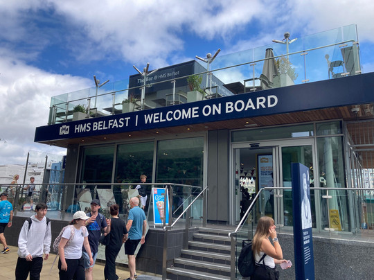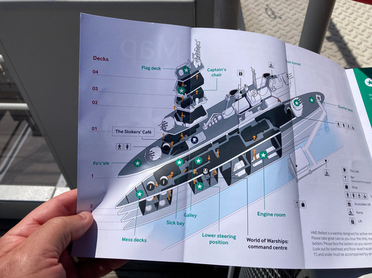 翻译:这艘标志性的二战巡洋舰就停泊在塔桥旁,距离伦敦桥站仅几步之遥。总的来说,我在船上呆了大约 2 个小时,参观了大部分向公众开放的景点(那是一个炎热的下午,船舱里闷热难耐)。船上有很多陡峭的梯子和几个舱口需要攀爬,所以正如你所料,如果没有手机,几乎不可能在任何地方导航。音频手机(带耳机)对于你走动时查找信息很有用,而且他们把评论控制在 1 分钟左右,这样你就不会分心。不得不承认,我有时会觉得布局和路线很混乱,但也许这只是我的感觉!船上有咖啡馆,志愿者会在特定时间进行讲座(讲座会在你登船的地方附近展示)——我听了一场 10 分钟的讲座,讲座内容是关于贝尔法斯特号巡洋舰和它在北极护航队服役的经历,6 月 28 日星期六下午的志愿者知识渊博,表达清晰。