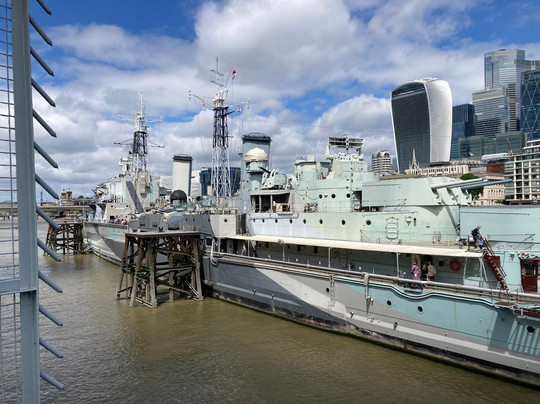 点评:This iconic WW2 Cruiser is moored just along from Tower Bridge and a short walk from London Bridge station. Overall I spent around 2hrs onboard and saw most of what was open to the public (it was a hot afternoon and sweltering inside). A lot of steep ladders and a few hatches to negotiate and so as you might expect, it’s almost impossible to navigate everywhere if less than mobile. The audio handset (with headphone) is useful for finding out information as you walk round and it’s good they’ve kept commentaries to around 1 minute each so you don’t lose attention. Have to admit I found the layout and route confusing at times but maybe that’s me! There’s an onboard cafe and volunteer talks at certain times (which are displayed near where you board) - I listened to a 10 minute talk on HMS Belfast and her time on the Arctic Convoys, the volunteer on Saturday afternoon 28/6 was knowledgeable and articulate in his delivery.