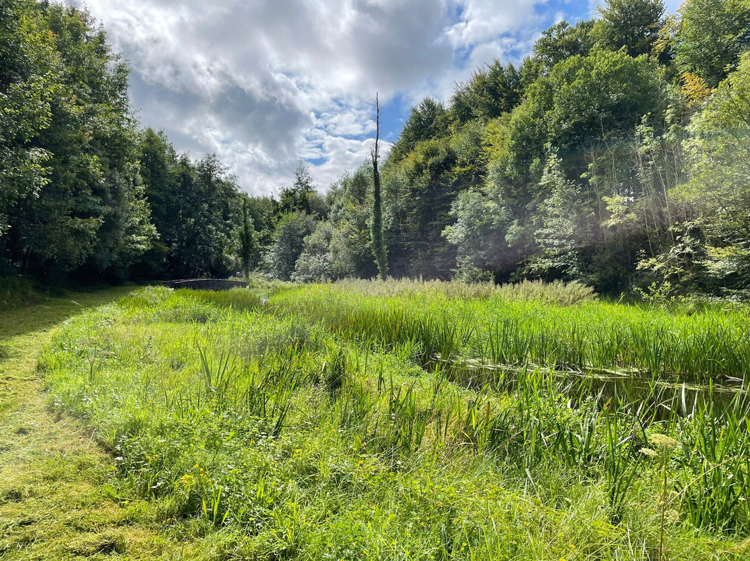 在城堡周围(位于牛场中)步行 5 分钟后,我们决定去停车场旁边的 Glinsk 遗产公园探险。这是一条美丽的步行道,长约 750 米,沿着一条潺潺的小溪和一系列石桥。最后,您可以沿原路返回,也可以走左边或右边的林地小径。我们先走了右边的路,这条路把我们带回了停车场,但遗憾的是,最后一段路需要通过部分被淹没的踏脚石穿过小溪!由于水流湍急,我们选择折返并走左边的路。这条路紧邻(安静的)道路,缓缓下降到停车场。我们很享受散步,公园美丽而宁静。请注意,水很深,因此需要密切监督年幼的孩子。