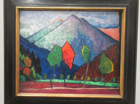 点评:Entrée = 17 €. Peu connue du grand public (surtout en France) et découverte, personnellement, grâce au film "Münter et Kandinsky" (2024) de Marcus O. Rosenmüller, il était temps de consacrer, en France, une rétrospective à cette artiste (1877-1962), éclipsée par son professeur puis compagnon, Vassily Kandinsky (1866-1944), un peu comme Camille Claudel (1864-1943) et Auguste Rodin (1840-1917). Elle fait partie des fondateurs du mouvement "Le Cavalier Bleu" (Der Blaue Reiter"), avec Vassily Kandinsky, Franz Marc, August Macke et Paul Klee. Sont exposées ses photos prises (une centaine) lors de son voyage aux Etats-Unis (1898-1900) avec sa sœur (son art du cadrage est discutable), où ses parents avaient vécu avant de revenir en Allemagne. Lors de son voyage en Tunisie (1904-1905) avec Vassily Kandinsky, elle réalisa 150 peintures et 180 photos. Elle a, aussi, collectionné 250 dessins d'enfants ("expressions originales et authentiques à même de ressourcer l'art moderne") (sic) et réalisé des dessins à la mine de graphite sur papier entre 1925 et 1930 (peut mieux faire !).