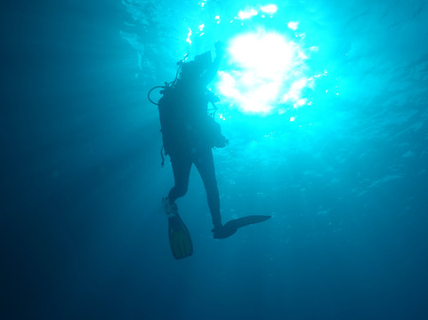 表面水温 22 摄氏度。使用 5 毫米半干式潜水服,并不冷。