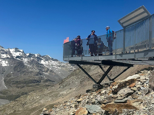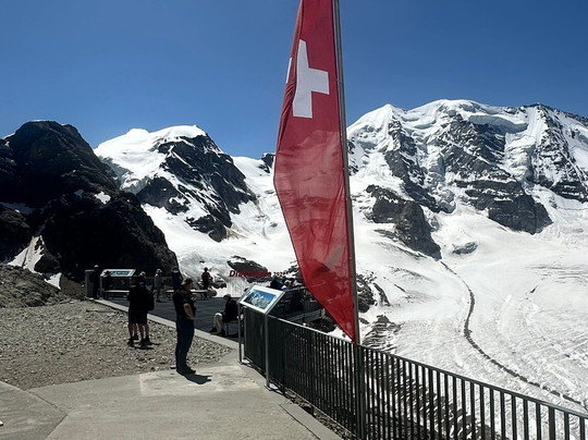 从山谷站出发,🚡大约7分钟即可到达山顶。登顶后,您可以欣赏到周围群山的壮丽景色,包括伯尔尼纳峰和帕吕峰。