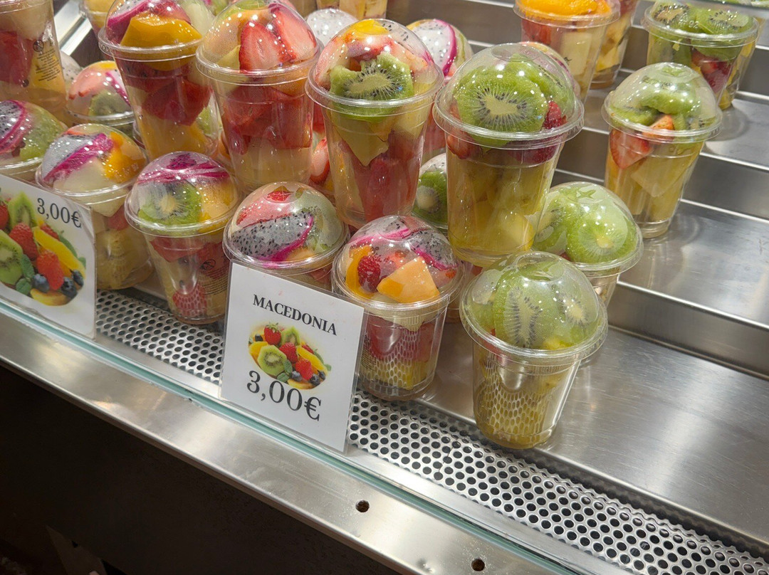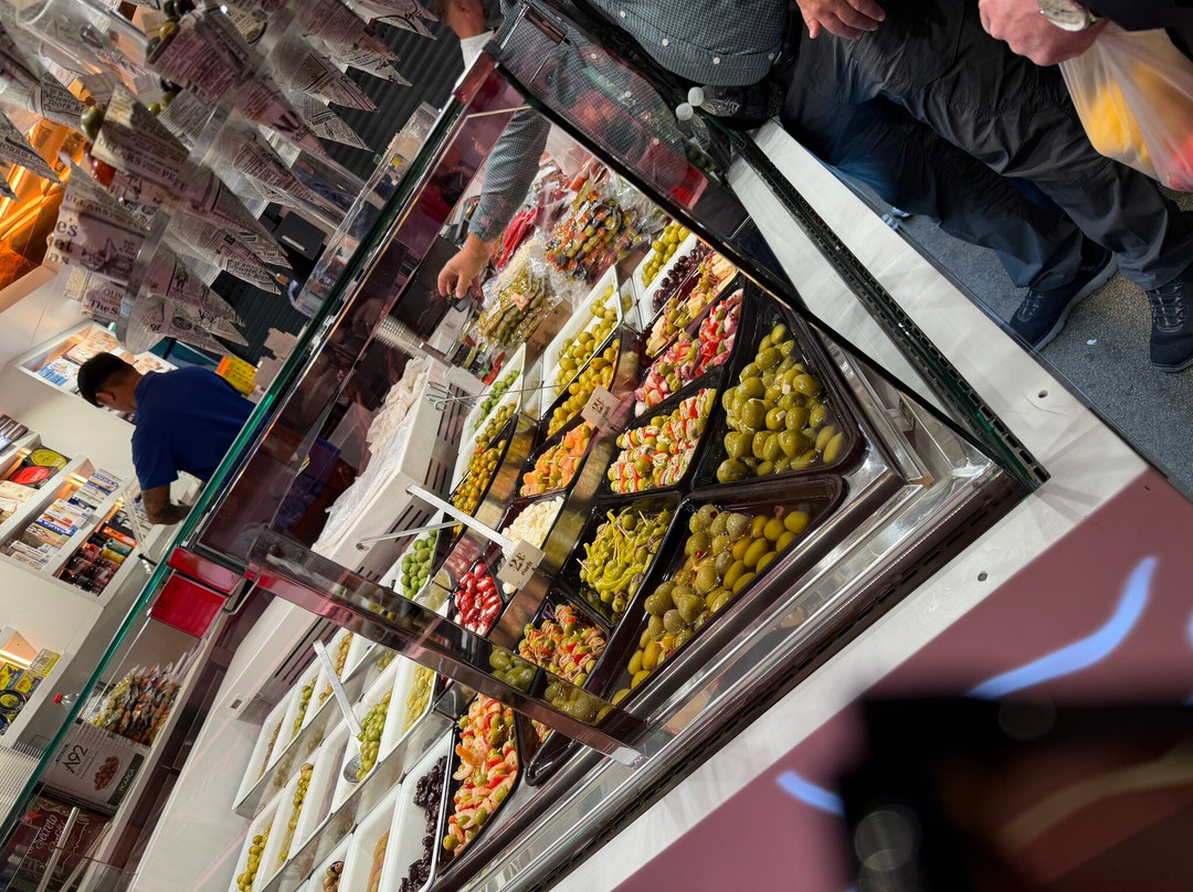 这里应有尽有:新鲜水果、西班牙小吃、海鲜、熟食、糕点——每个摊位都像是一件艺术品。你会忍不住想坐下来,把整个市场都逛一遍,最好能待上好几天。尽管人潮涌动,却丝毫没有拥挤的感觉,反而充满活力,热闹非凡。