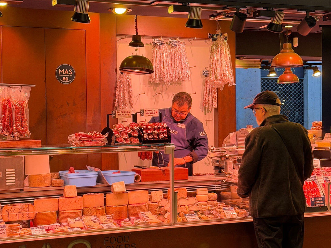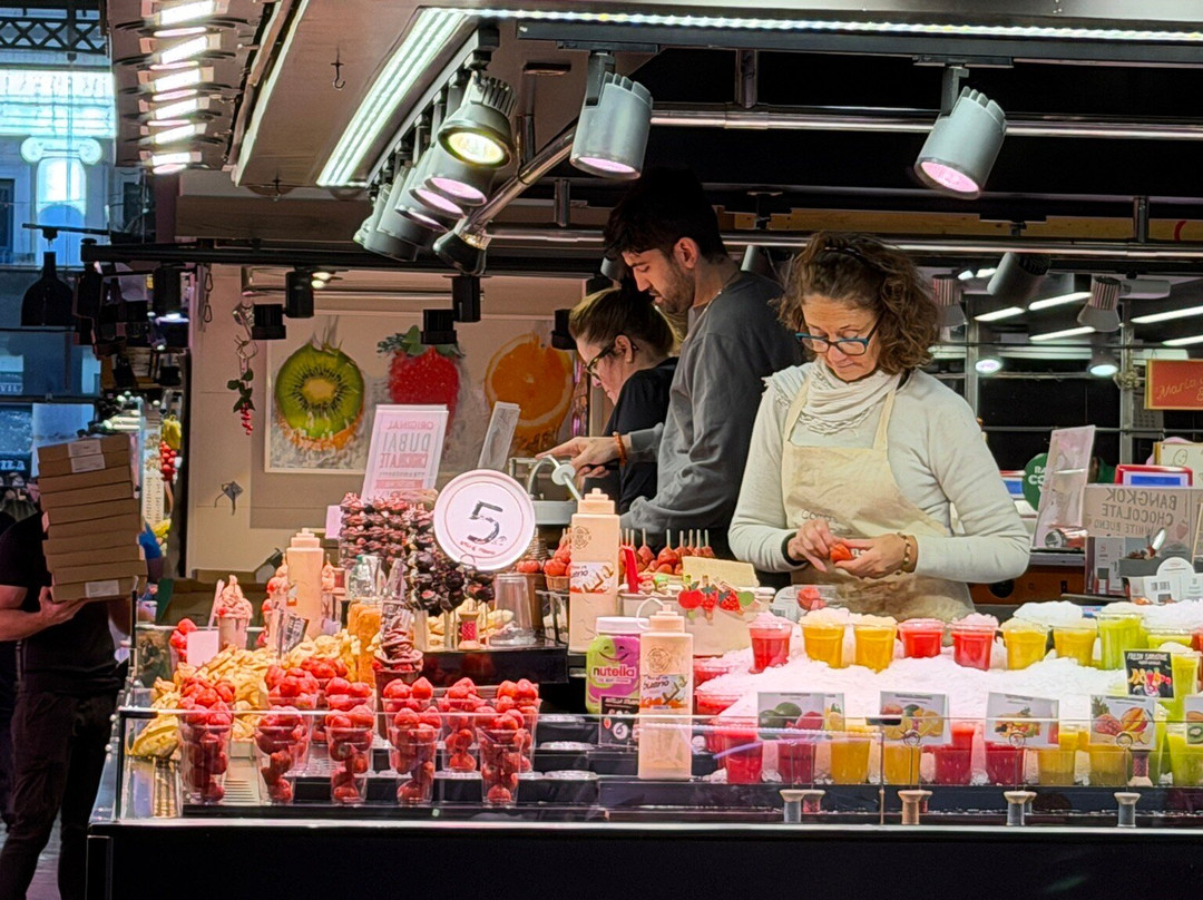 Här finns allt: färsk frukt, tapas, skaldjur, charkuterier, bakverk – och varje stånd känns som ett konstverk. Man vill bara slå sig ner och äta sig igenom hela marknaden, helst i flera dagar. Trots att det var mycket folk kändes det aldrig trångt, bara livligt och energifyllt.