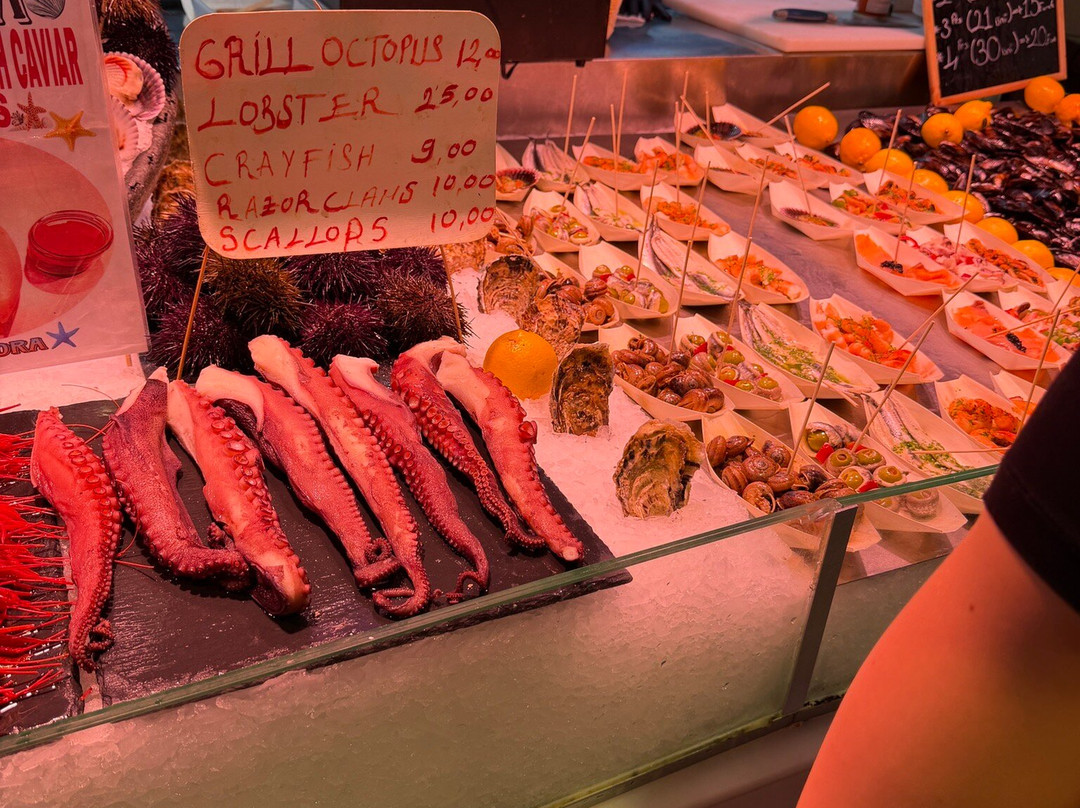 点评:Vi hade Mercat de la Boqueria med på vår lista över sevärdheter, men var på väg till annat när vi snubblade in via en sidogata – och vilken lyckträff det blev! Det här är inte bara ett mattorg, det är en färgsprakande fest för alla sinnen. Dofter, smaker, ljud och färger i en underbar symfoni.