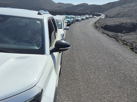 没错,巴士之旅的景色确实令人叹为观止,熔岩海也确实很遥远……但说实话,每人30欧元的门票,加上巴士上像牲口车一样拥挤的氛围,以及在停车场长达一小时的等待,多少破坏了体验……哦对了,我还没提到巴士上播放的《2001太空漫游》的配乐……说真的,我们更喜欢独自徒步旅行时听原版……还有,千万别在回程的巴士站下车,那里有个停车场,50头倒霉的骆驼等着拉着游客拍照……简直太糟糕了!