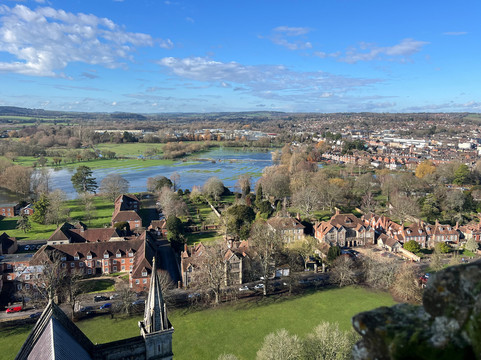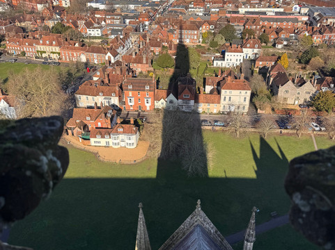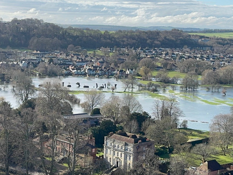 Despite all the recent rain, we were fortunate to have a lovely clear and sunny day. The views from the spire balconies was wonderful and the full extent of the flooded fields could be clearly seen.