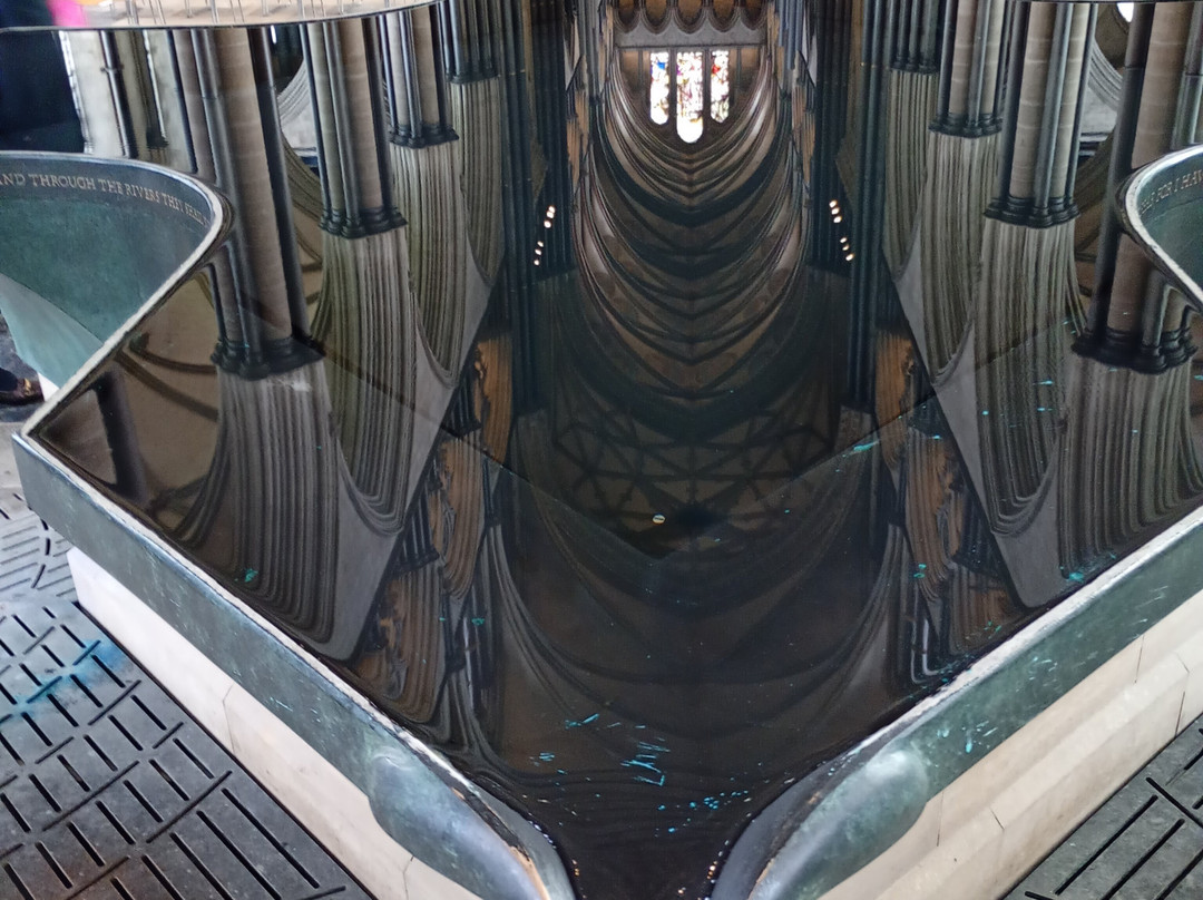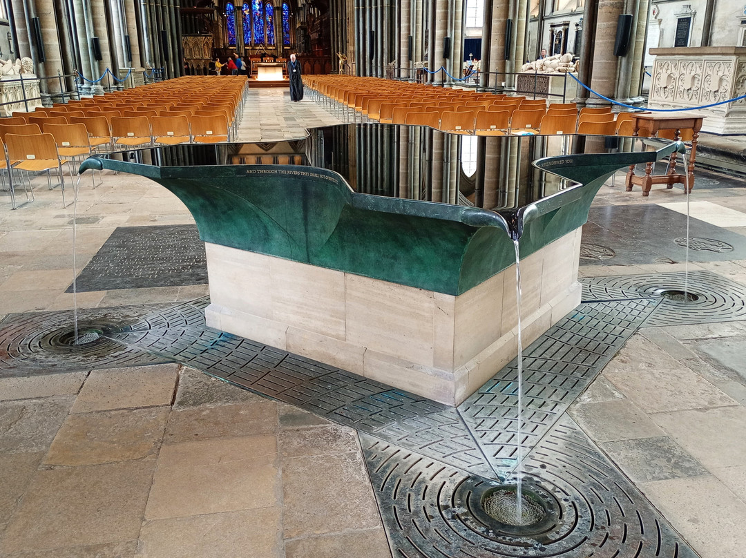 接待处的女士们非常友好健谈,但由于是在4月1日之后,门票价格从13英镑涨到了14.50英镑!门票包含《大宪章》的参观。与教堂雕刻精美、装饰华丽的外观相比,内部显得有些朴素。洗礼池(由威廉·派伊设计)看起来更像一个无边泳池,但它却深受日本游客的喜爱,我排了很久的队才拍到一张照片!显然,这里是教堂的一大亮点!我在教堂里待了一个多小时,觉得礼品店特别俗气,在餐厅吃了饭——味道还不错,物有所值,但服务员动作有些笨拙,而且桌椅也不够。
