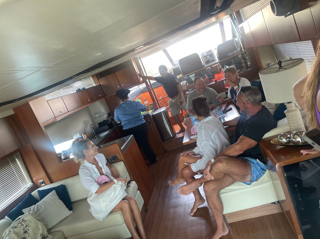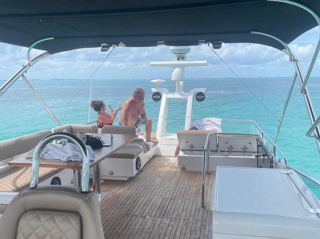 点评:I don’t even know where to start! This company is beyond AWESOME! We had the best time and the staff is beyond accommodating. We had an issue with the boat due to hurricane Helene. Most of the area was on power reserve so the boat’s battery was unable to charge. However, Magda our charter host was outstanding. We hung out on the boat with the staff and enjoyed it while we waited for it to charge. Here is the best part, chef Sandy was the bomb! She made us fresh salsa and fruit while we waited along with drinks. She served us drinks, margaritas. Anything we wanted and cooked fresh food while we waited. Little did we know she was working on her birthday, but she was more worried about keeping us happy. While Sandy kept our bellies full with food and drinks, Magda went to find the beer that we requested. The ENTIRE staff was so accommodating. Once we were charged the Captain took us to some beautiful water to hang out and have fun! The music, food, and drinks never stopped. The fish and chicken tacos from Chef Sandy was the best food we had all week! She blew the resort food out of the water! She made a homemade chipotle sauce we are all still taking about!! This was the best charter I have ever taken. This crew and hostess are top notch! This is a MUST charter company. Although the boat wasn’t charged, which was the hurricane’s fault, this crew went above and beyond to make this a flawless and memorable trip for us! We couldn’t have asked for a better crew, boat, and 6 hoirs of fun!