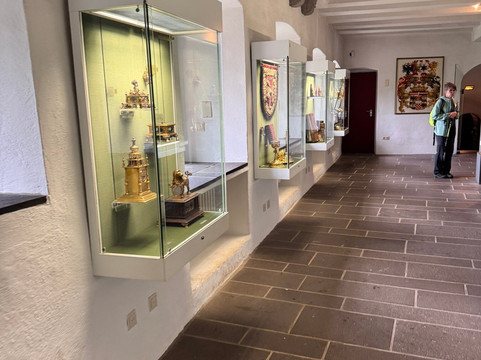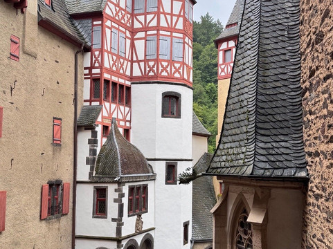 我们买了一张家庭套票,包含一次导览,价格合理,2名成人和1名儿童34欧元。虽然有英语导览团,但显然不如德语导览团频繁,所以我们就跟着其中一个,用了纸质指南,上面解释了我们参观的房间。导览是游览埃尔茨城堡的唯一方式,没有自助游,而且只能看到城堡建筑群中相对较小的一部分。不过,这趟旅程还是值得的。