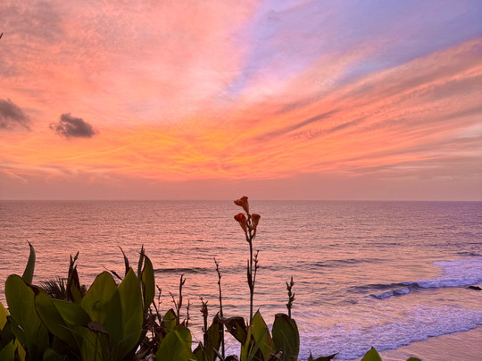 As for the place, Varkala is an oasis of nature. This place has a special light, and feels very connected to the sea. The school is a 5-minute walk from the sea. The sunsets are wonderful, and the amount of life, plants, flowers, and small animals is mind-blowing.