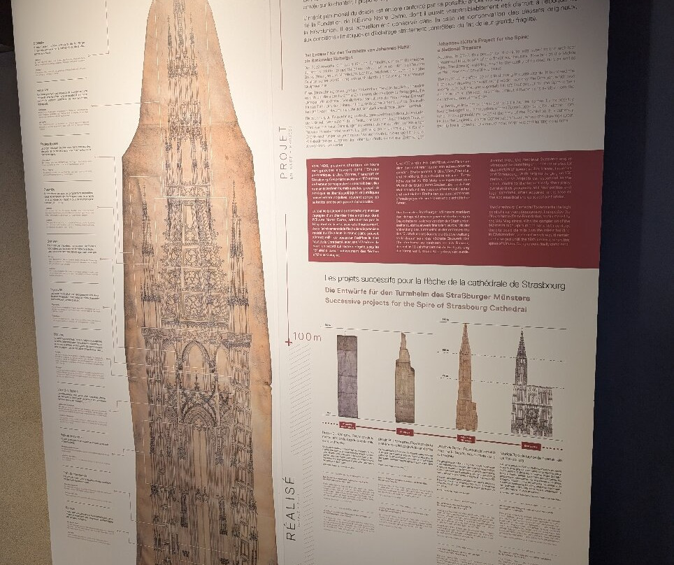 翻译:这家博物馆拥有世界上规模最大的斯特拉斯堡大教堂中世纪建筑图纸收藏之一。此外,您还可以欣赏到一些教堂出土的石器文物,并通过虚拟现实和互动展品更深入地了解大教堂本身。