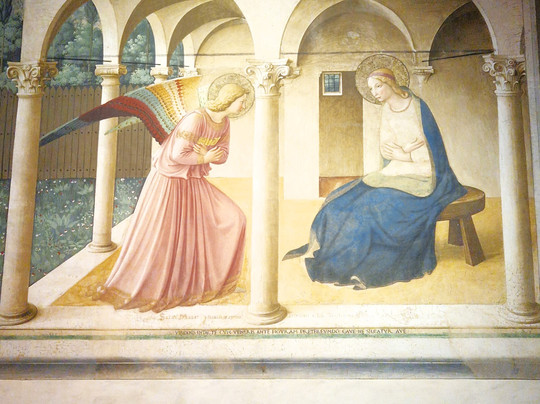 他邀请了住在修道院里的修士弗拉·安杰利科来装饰一楼的43间房间,拾级而上,您会看到他创作的令人惊叹的《天使报喜》;这幅画是马德里普拉多博物馆藏品的复制品。