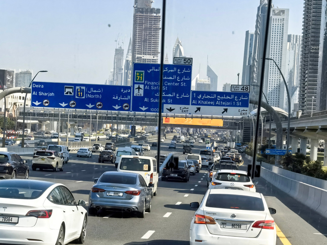 点评:Главная транспортная магистраль Дубая названа в честь бывшего президента ОАЭ шейха Зайда бин Султана Аль Нахайяна. В районе Джебель Али она переходит в магистраль Е11, ведущую в Абу-Даби, а на севере в другие эмираты- Шарджу, Аджман, Рас-эль-Хайма. Взятая вне контекса 55-километровое шоссе шейха Зайда вызывает восхищение: по 6 полос в каждую сторону, разделительная полоса, удобные съезды. Но это, если Вы смотрите на это из окна автомобиля, или как мы из окна автобуса "Etihad" из аэропорта Абу-Даби. А вот когда оказываешься на месте пешехода, то вечер перестаёт быть томным. Шоссе, нигде не уходящее под землю, делает практически невозможным для пешеходов переход через него. Представьте себе скоростную магистраль, проходящую через центр Москвы, или Западный скоростной диаметр через центр Санкт-Петербурга. Представили? И маленькое уточнение. Она не на эстакаде, а на земле! 12 полос! И будет как в Дубае! На всём протяжении есть лишь несколько мостов и подземных переходов, пересекающих дорогу. И это почти всегда переходы при станциях метро. Есть участки, где требуется пройти пешком несколько километров, чтобы перейти на другую сторону дороги! Дубай- отличный город для автомобилей, но полный кошмар для пешеходов. И это не только туристы, но и огромная часть мигрантской рабочей силы. Это в свою очередь уродует топологию города, лишая её рациональности