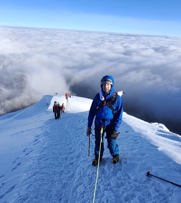 翻译:我无法用言语来表达我对Activexpedition和我的向导Miguel的感激之情,他们带我登上了这些火山。最终目标是钦博拉索山(几乎成功了),但其他几座山也都登顶了,天气完美,山里的每一天都精彩纷呈。适应性训练按计划进行,期间还进行了几次令人难忘的攀登(El Corazon和Illiniza Norte)。攀登过程很艰难,有些路段需要一定的技术,但恢复情况良好。我们住宿的地方都很棒——睡眠充足,食物美味。我住在海平面,一年只能去几次山区。Miguel现在面临着艰巨的任务。最后两座山峰需要露营,而且经常要深夜出发。攀登科托帕希火山需要付出很多努力(冷静而互相支持的努力)。但当太阳升起时,走到山顶边缘的那一刻真是太棒了。钦博拉索山的顶峰与我失之交臂(天气不太好,更冷,睡眠也不好)。我这么说是想说明这次旅行绝非儿戏——它需要接受所有相关技能的训练。Activexpedition 为我提供了所有必要的工具,只是我自身能力稍有不足。我已经开始计划下一个“第一次”——阿空加瓜山。我曾跟随 Activexpedition 走遍厄瓜多尔(亚马逊、加拉帕戈斯群岛、火山地区、云雾森林,骑行、徒步、划船),现在我要看看他们能否带我攀登更高的山峰!今天就让 Activexpedition 带你探索南美洲的户外世界吧!
