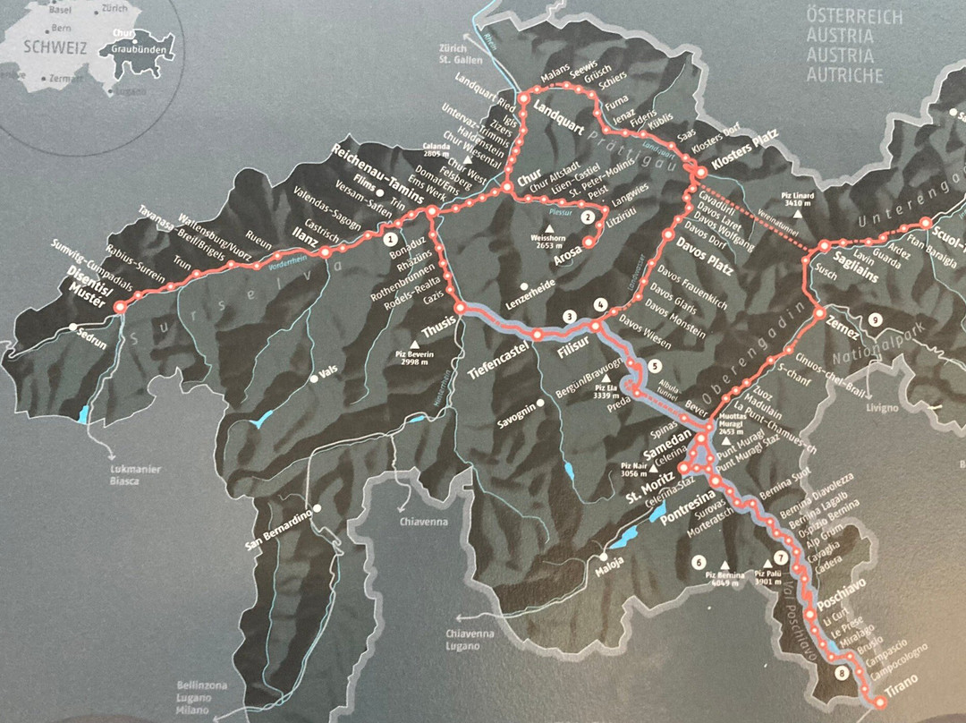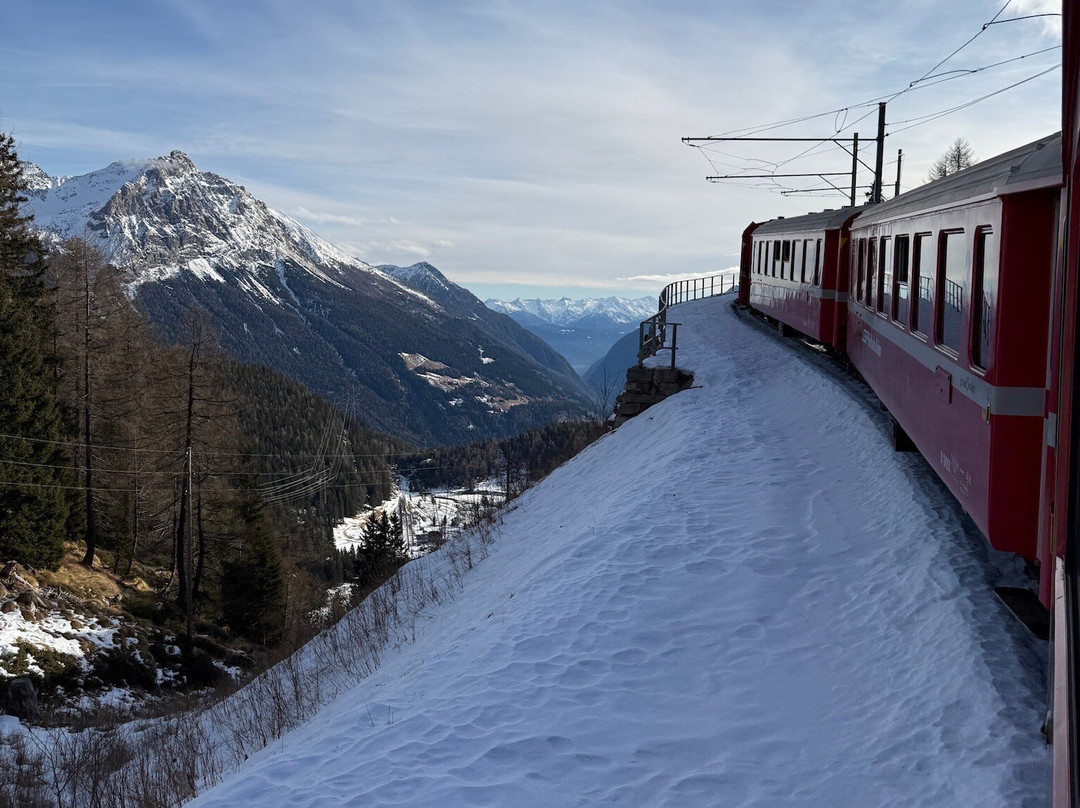 点评:The railway-line was completed in 1904 and Glacier Express now is known as one of the most spectacular trains on the planet. The train offers 2, 1 and excellent class and is always full of loud tourists. Space for luggage is limited. You can also ride the line with common trains that do not need reservations. Note that then you have to change trains in Disentis, Andermatt and Visp, but onnections are well timed and often at the opposite side of the platform. All trains are comfortable and have large windows. The Glacier Express has panorama windows and for drinks and lunch you are served at your seat. The assigned seats on the Glacier Express often are fully booked. We found the common Rhätiche Bahn trains quieter. The same applies for the Bernini Express. Both routes are highly recommended.