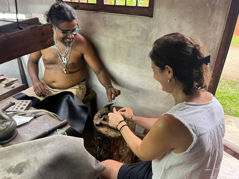 点评:Malik was a complete star. He organised a fantastic afternoon for my niece and I to visit a local artisan jewellery workshop. Father and son Novak and Nipun are the most incredible artists and jewellers. They showed us every step of the process from melting the silver, shaping, hammering, moulding, filing and polishing. All done with exceptional precision. We chose designs and gems, which were expertly crafted. We got to hammer our silver - much harder than they made it look! And the cost of this afternoon was so reasonable. Far cheaper than the more mass market options and allowed us the opportunity to directly contribute to the jewellers themselves rather than the shop markups. I cannot thank Malik enough for this memorable afternoon - and we have the jewellery which means we will never forget it! I can’t wait to visit Sri Lanka again and look forward to staying @thelodgebyecolove , cooking lessons and more incredible experiences. Thank you!!