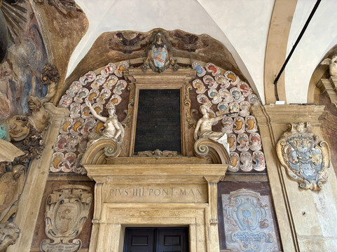 点评:I had been to Bologna many years ago, but I didn’t forget the beauty of the Archiginnasio with its charming courtyard and magnificent elaborate frescoes of the Portico del Pavaglione, so I promptly returned to see it again on the first day of my stay in the city.