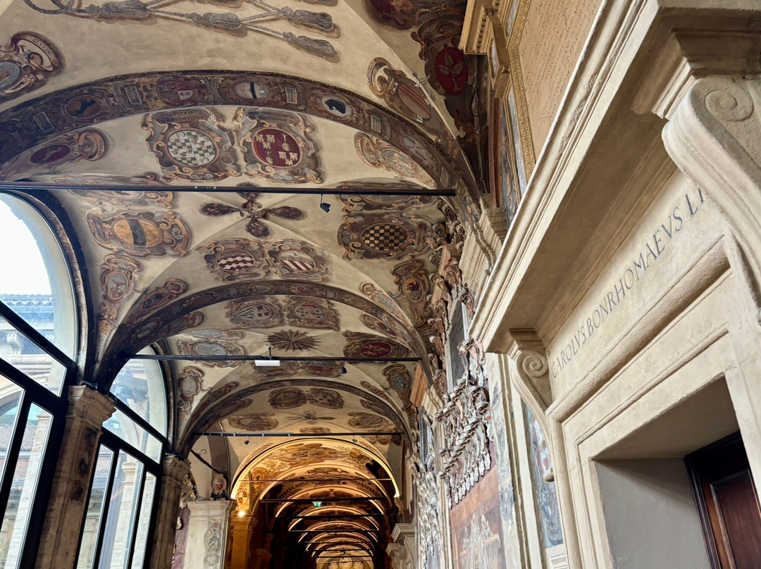 翻译:我多年前曾去过博洛尼亚,但阿奇吉纳西欧宫(Archiginnasio)的魅力至今仍令我难以忘怀,它拥有迷人的庭院,帕瓦廖内门廊(Portico del Pavaglione)的精美壁画更是令人叹为观止。因此,在博洛尼亚停留的第一天,我便立即返回,再次参观。