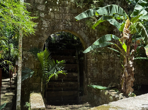 这里以前是一个种植园,所以有很多介绍历史的牌匾,还有一些建筑遗址。水池和人工瀑布非常漂亮,让人感觉很放松,整个区域都让人感觉很惬意。他们会定期安排班车返回港口,并提前通知发车时间和下一班车的预计到达时间,所以游客可以根据自己的喜好安排游览时间。