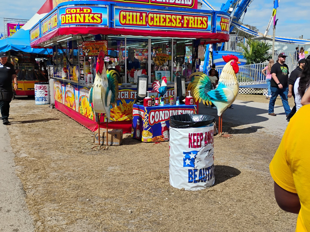 点评:Cones every year to Plant City. Fun place to ride the rides if you like them. They have a few shows. Of course everyone goes to the fair for fair food. You can buy tickets early in Publix or just buy at the gate(wait time is longer). You can come and go but got to get stamped if you have to leave and return later that day. Nice kids rides for the little ones. Check out their homemade competition things from quilts to cake to pictures and etc. You can ride a scooter through there but there are also grassy dirt areas you make not . Plenty for everyone. Either you can buy strawberry shortcake ready or there is a build your own strawberry shortcake too. Since Florida is hi polar check the weather. It could be a hot Feb day or a cold one or a rainy one. So plan accordingly