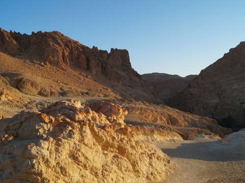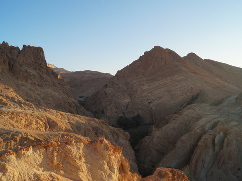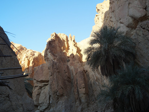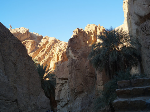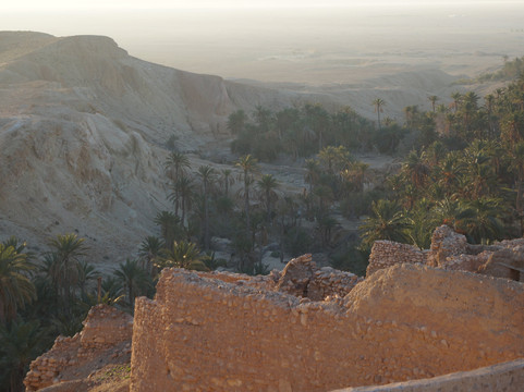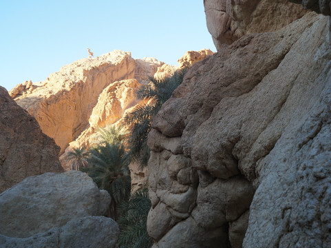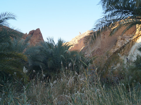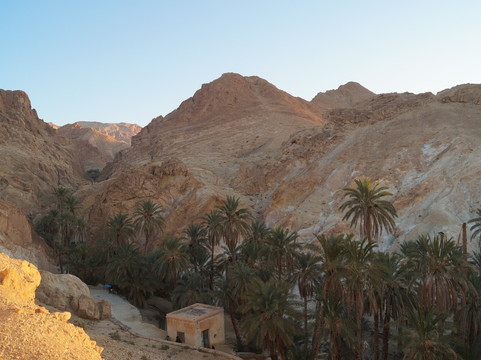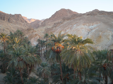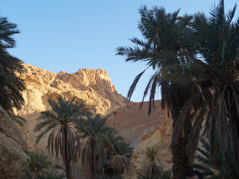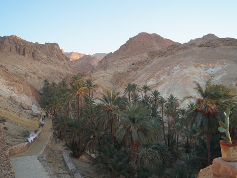 翻译:从托泽尔出发,不到一小时即可抵达切比卡山地绿洲,这里是该地区最令人心旷神怡的自然景点之一。绿洲位于阿特拉斯山脉,靠近阿尔及利亚边境,其棕榈树林掩映在峡谷之中,可饱览令人叹为观止的全景,是绝佳的摄影胜地。绿洲附近,在高处,坐落着一座如今已废弃的古老村落遗址和几家咖啡馆。从绿洲入口出发,您可以沿着环形路线漫步,先从高处俯瞰棕榈树林,然后下行至泉水处,最后穿越整个绿洲回到起点。全程大约需要半个多小时,沿途可以拍摄到许多美丽的画面,尤其是在日出日落时分,棕榈树的翠绿与周围群山的金黄和赭色交相辉映,构成一幅绝美的画卷。切比卡绿洲景色迷人,绝对值得一游。